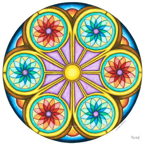 The Portal mandala offers us a variety of ways to go deep within ourselves using the different sections of this mandala. In and of itself, a mandala is a portal, an opening, giving us a glimpse into itself, drawing us into it, so that we may receive its message and healing energy.
