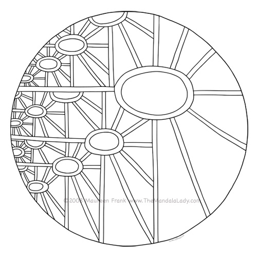 - “Cosmic Sunflower” can by found in the Love and Light Mandala Coloring Book