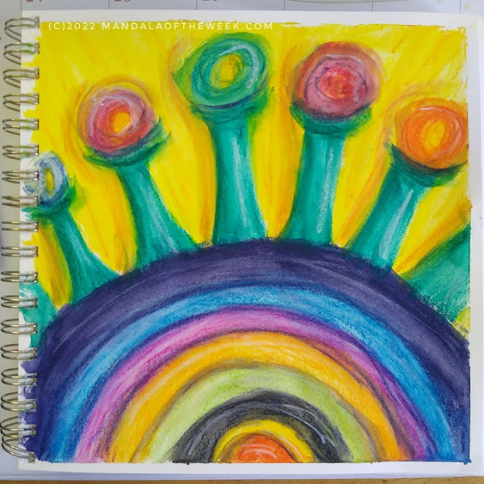 btw…here’s after I laid down the dry layer of colors using watercolor crayons