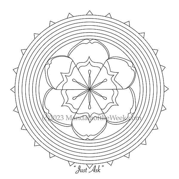 Over the next seven days, I’ll be delving deeper into these principles via multiple colorings of this mandala and posting them on the Mandalas of the Day. My plan this week is to consciously ask for help while working through my fear of rejection.