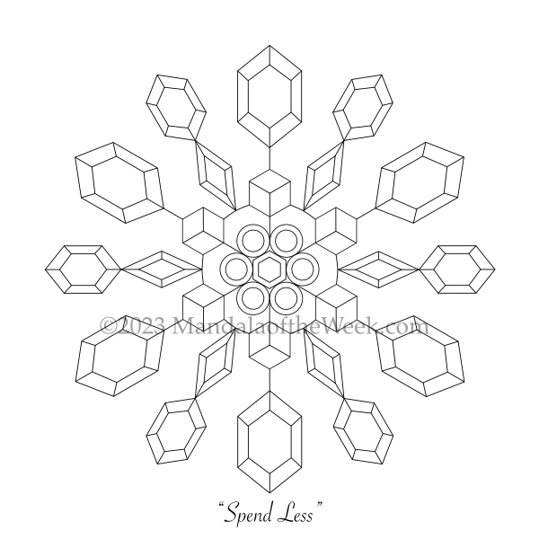 Over the next seven days, I’ll be delving deeper into these principles via multiple colorings of this mandala and posting them on the Mandalas of the Day. My plan this week is to take a closer look at my spending and explore ways to spend less and make more.
