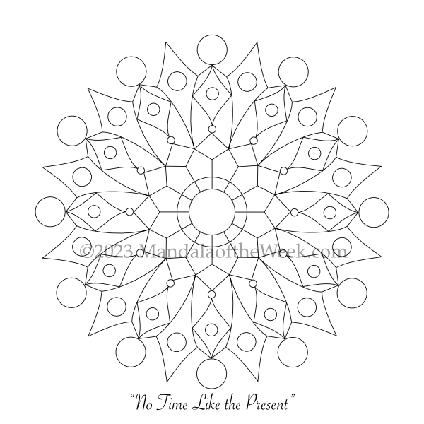 Over the next seven days, I’ll be delving deeper into this principle via multiple colorings of this mandala and posting them on the Mandalas of the Day. My plan this week is to ponder projects I’ve been putting off and what it would take to start them.
