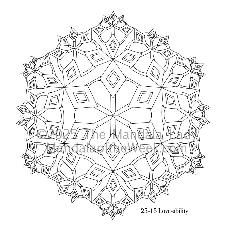 Each Monday or Tuesday you’ll receive in your inbox a free PDF copy of each week’s mandala for coloring. Happy Coloring!