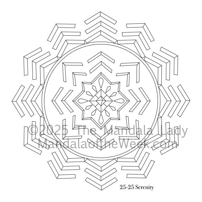 Each Monday or Tuesday you’ll receive in your inbox a free PDF copy of each week’s mandala for coloring. Happy Coloring!