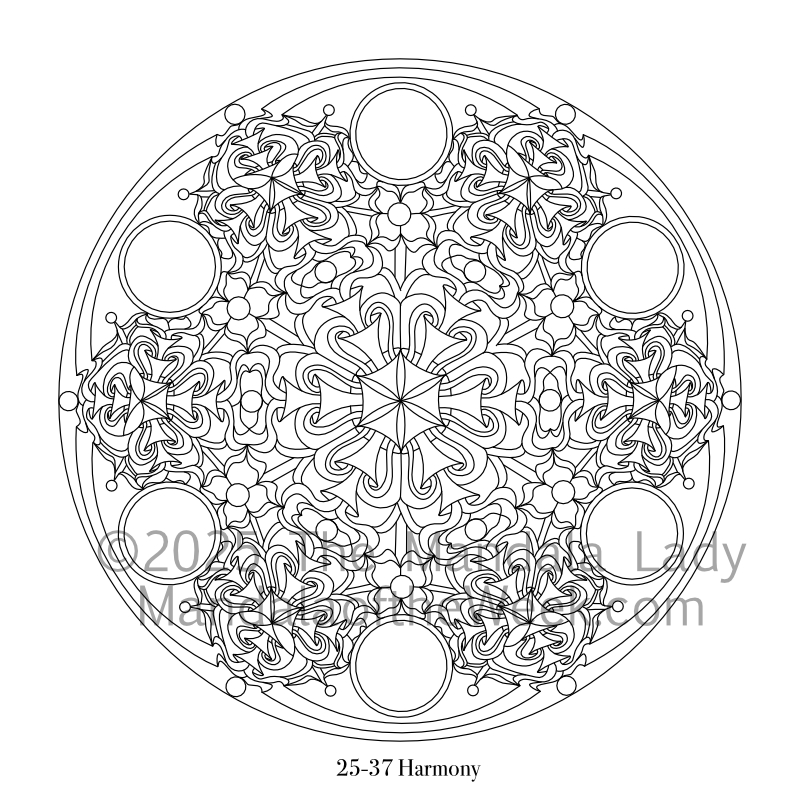 Each Monday or Tuesday you’ll receive in your inbox a free PDF copy of each week’s mandala for coloring. Happy Coloring!